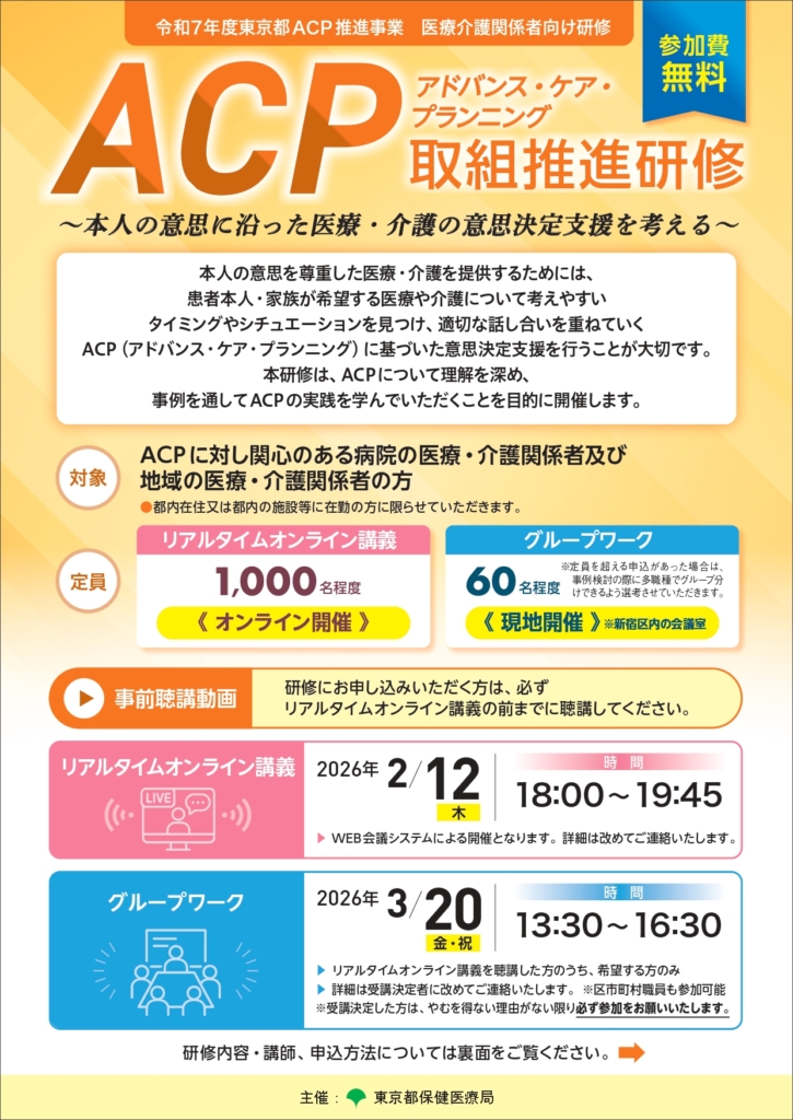 東京都より「アドバンス・ケア・プランニング取組推進研修」のご案内